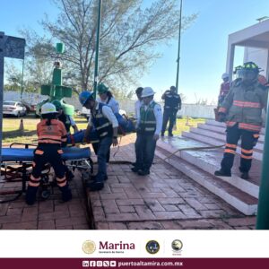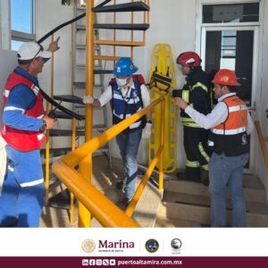 Durante la actividad, la Unidad Interna de Protección Civil, en coordinación con la Central de Emergencias Industriales y Portuarias, actuó de manera eficiente para evacuar al personal, rescatar a las víctimas y controlar el siniestro simulado.
